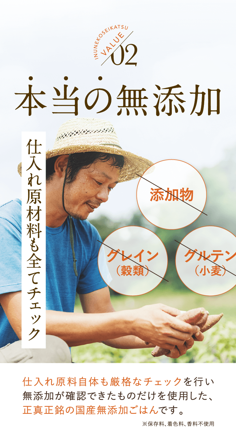 着色料や香料だけではなく調味料も不使用の犬猫生活は無添加なレシピと言えるでしょう。
